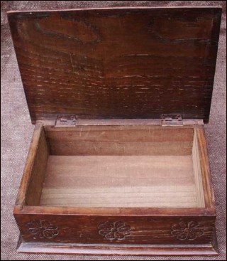 Boite à cigares de table bureau en bois de châtaigner massif, vers 1950. travail breton entièrement réalisé à la main, en bon état. Hauteur 6 cm, largeur 18 cm, profondeur 12,5 cm.