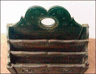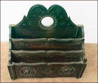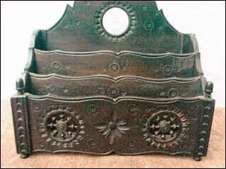 Letter holder in solid chestnut all hand carving made around Quimper in 1920. Good condition only 2 barleycorns on the top are missing. 9"1/2 tall 9"7/8 width 4"1/2 depth.
