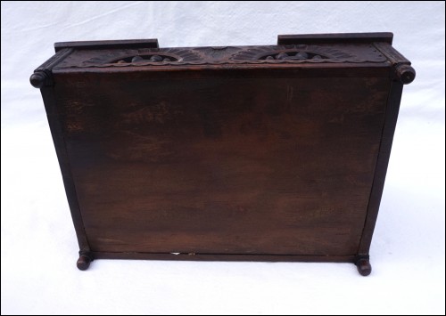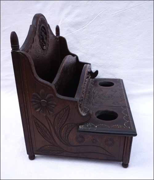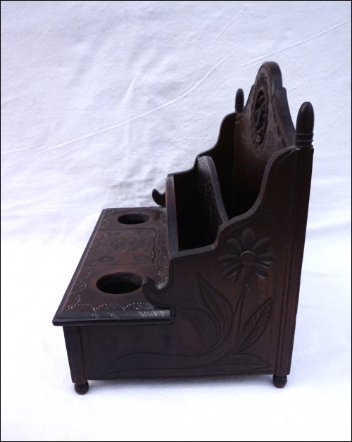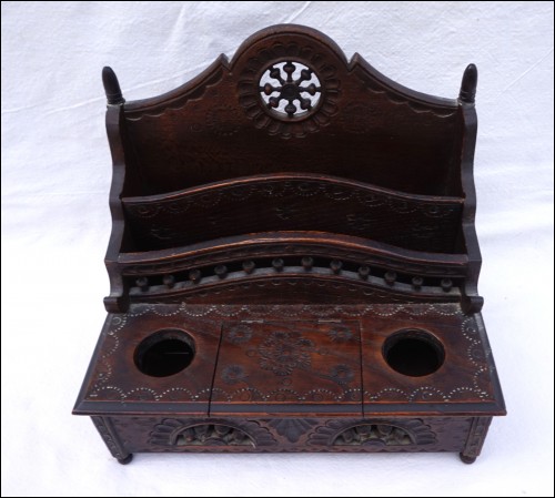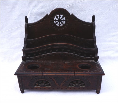 Encrier porte lettre en bois tourné et sculpté , région de Quimper vers 1980. Hauteur 23.5 cm, largeur 25.4 cm, profondeur 17.4 cm. Parfait état.