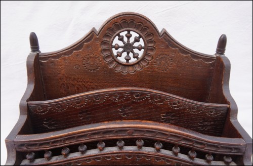 French carved turned wood inkwell letter holder stand made near Quimper during the 1970's. 9 1/4" (23.5cm) height, 10" (25.4cm) width, 6 7/8" (17.4cm) depth. Perfect condition as shown by the following pictures.