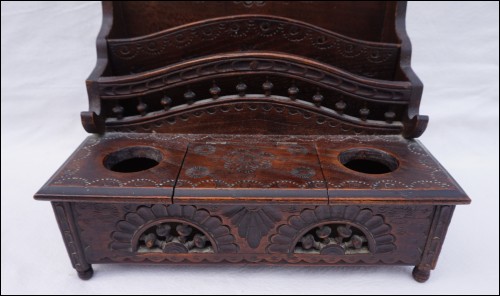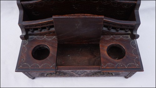 QUIMPER Inkwell Letter Holder Desk Stand Carved Wood Turned Wood