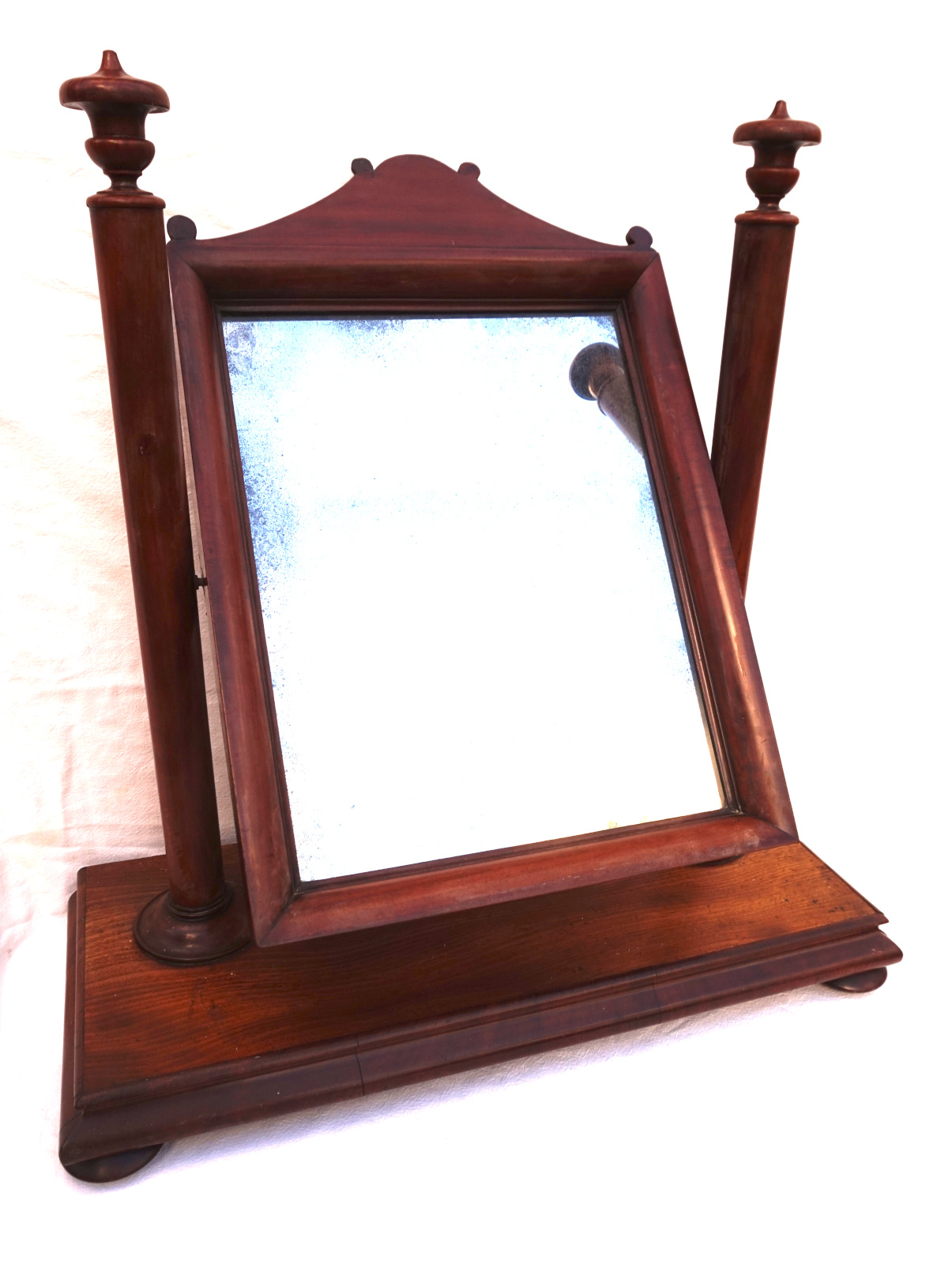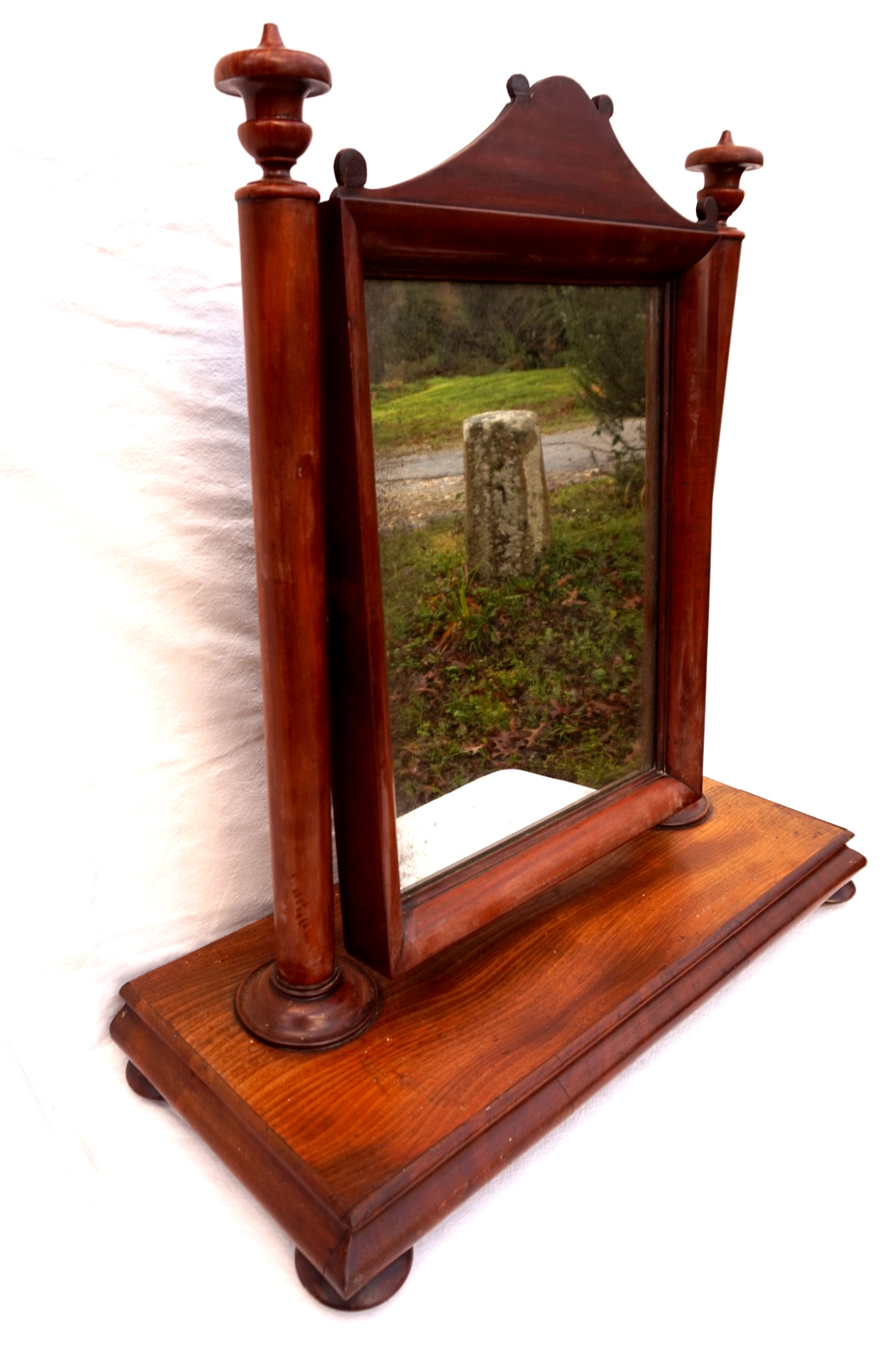 Victorian vanity shaving swivel stand mirror in mahogany made during the second half of the 19th century. 28" (71cm) height, 27 1/8" (69cm) width, 11 5/8" (29.5cm) depth. Beautiful condition a few tiny stains on the mirror as shown by the following pictures.