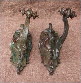 Pair of French Gothic Bronze Curtain Tideback Holdback 1850