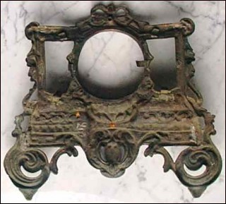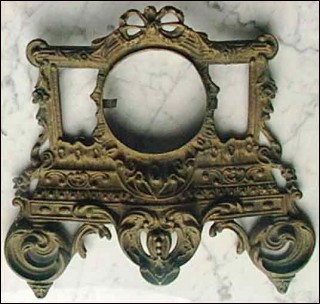 This brass front in Louis 15th style has been made around 1850 for a Paris movement mante clok. 3"1/2 diameter. Good condition 10"1/2 tall 11"1/2 width. Good condition.