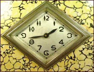 This mantle clock with 2 vases has been made probably by the Wasmüel factory in Belgium around 1940. In majolica decorated like marble, theses 3 pieces are not signed just the clock has a model number and two marks pressed in the paste on the bottom. The movement works, the clock and 1 vase are perfect the other vase has been repair like you can see on the picture below. 9"1/4 tall 12" width for the clock.