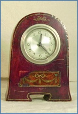 This charming small painting wood clock has been made in France in the 20's. It's running and in good condition for use but I think a good cleaning is necessary for appreciate the quality of the clock work. The painting decor simulates inlaid work.5"1/2 tall, 3"3/4 width, 1"1/2 depth. Good condition just a few weather damage. One small blown on the aluminum border, and the hand painting decor is a little erased.