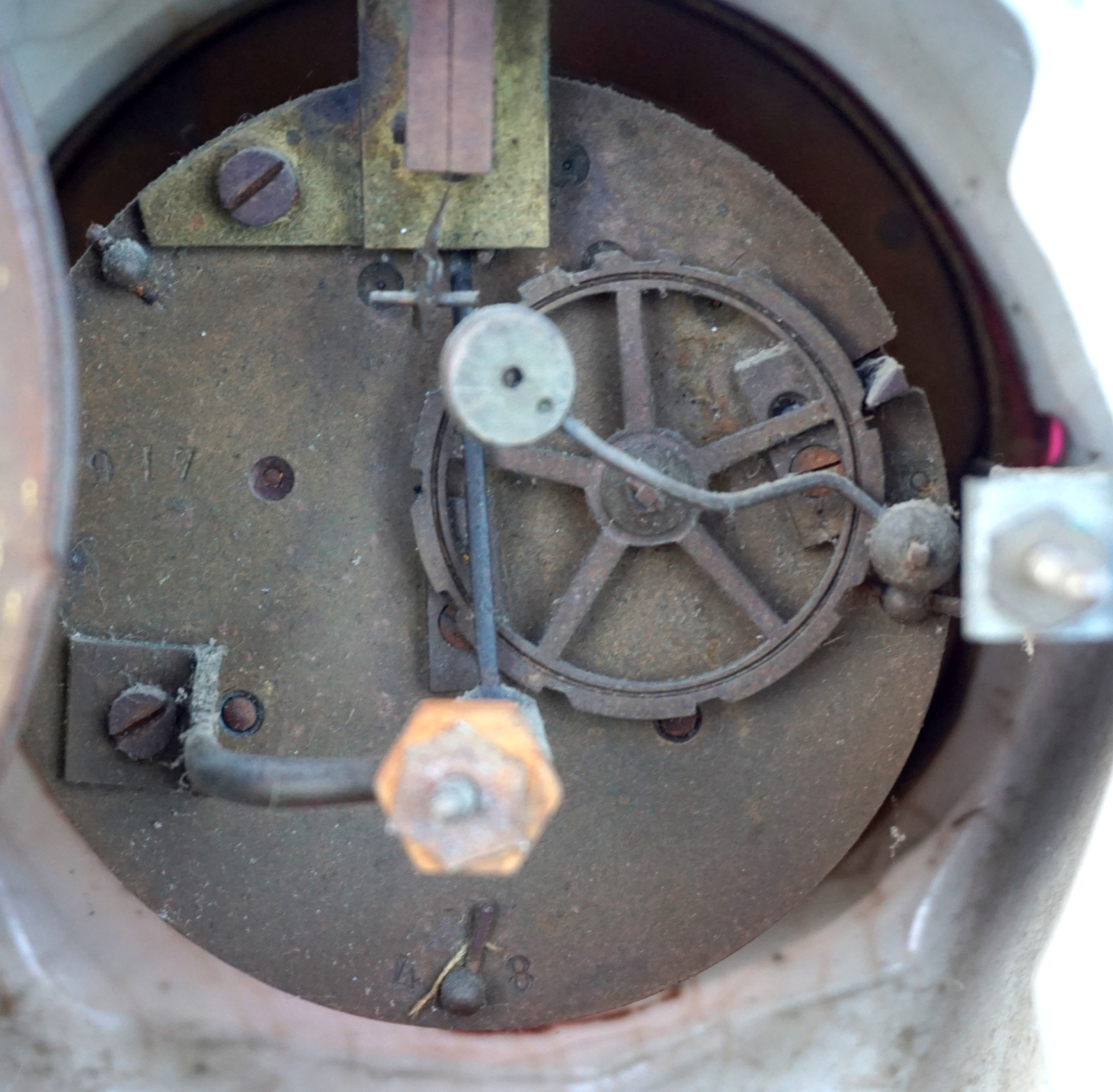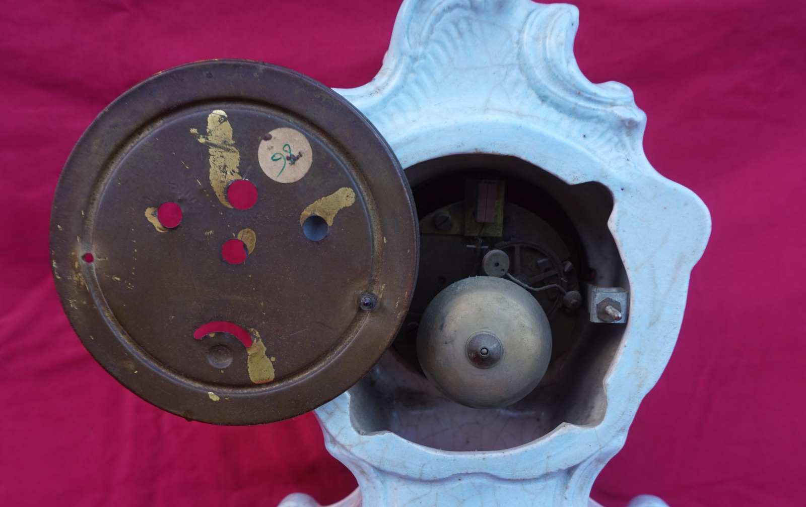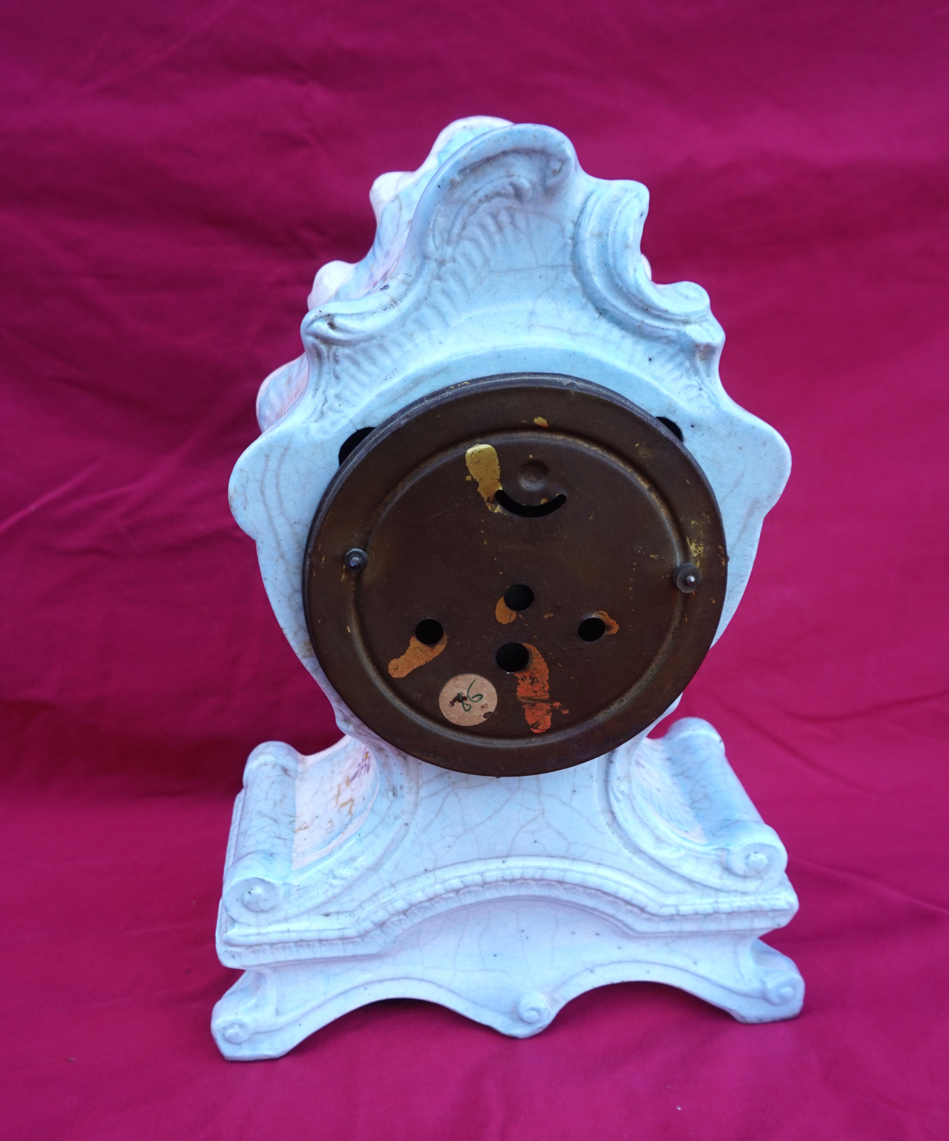 Pendule de Style Louis Xv en céramique avec un mouvement de Paris, vers 1900. Hauteur 31cm, largeur 22cm, profondeur 10.5cm. Dans l'état, sans balancier, ni clef.