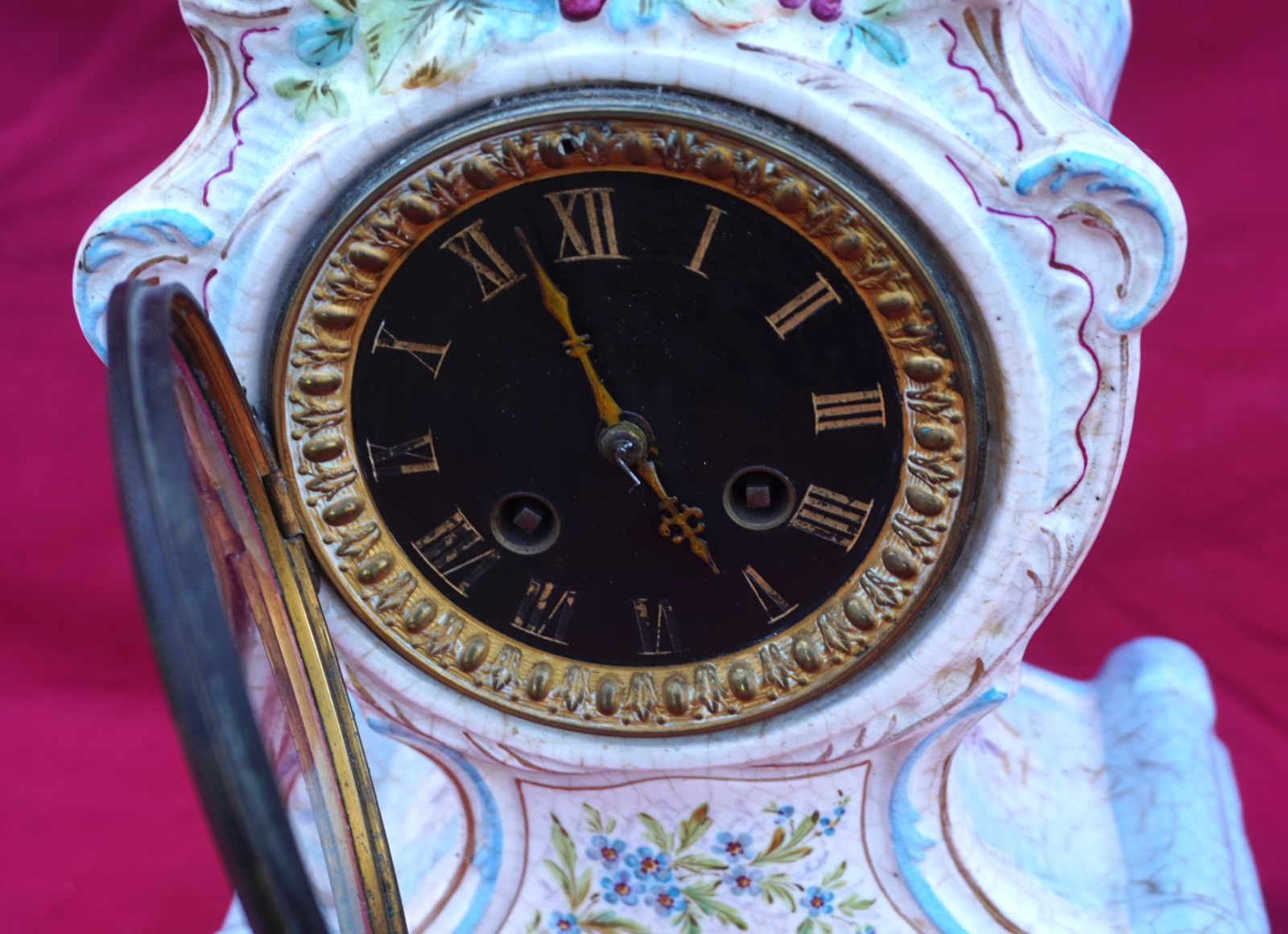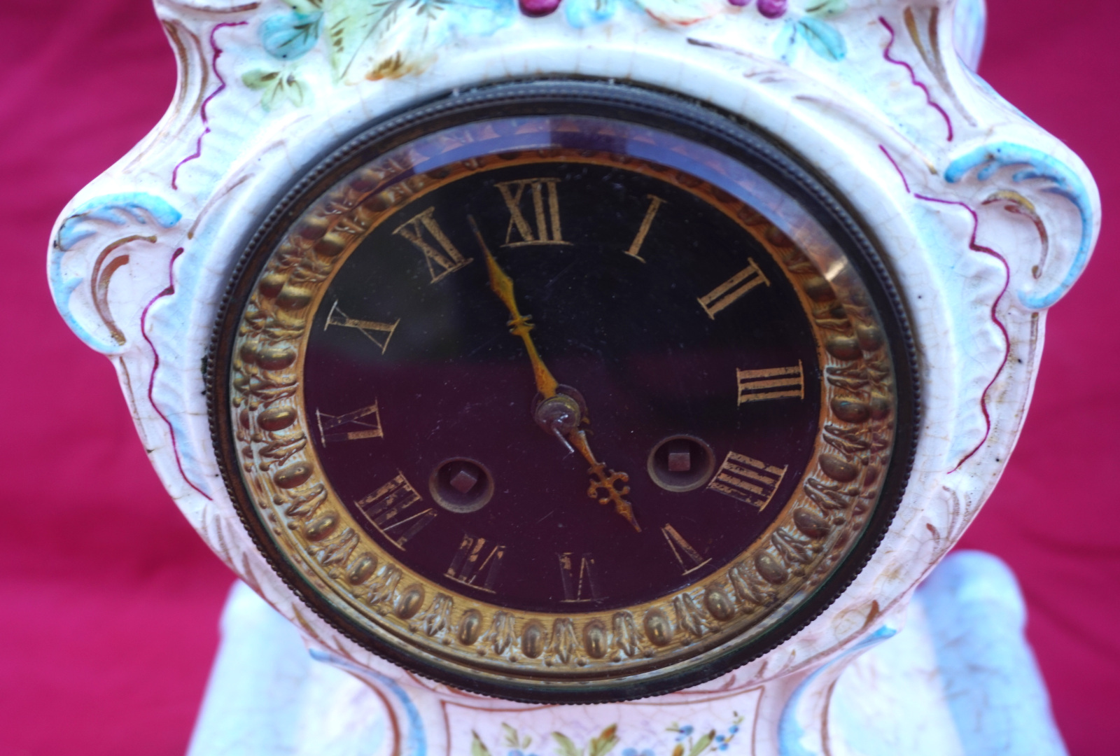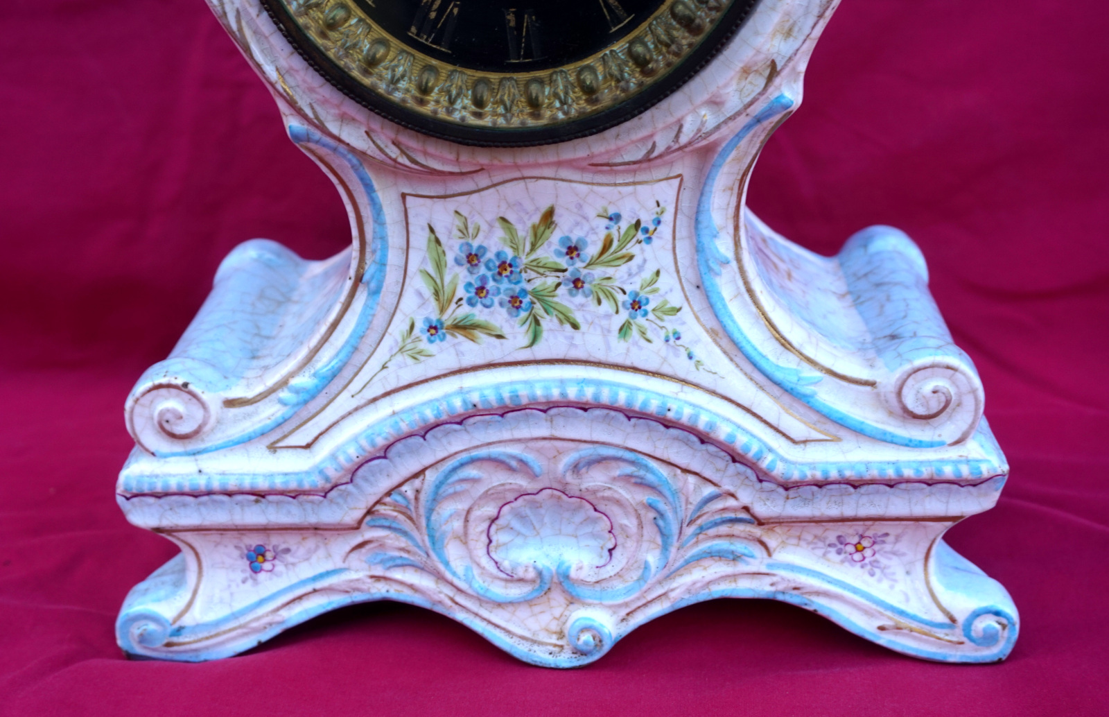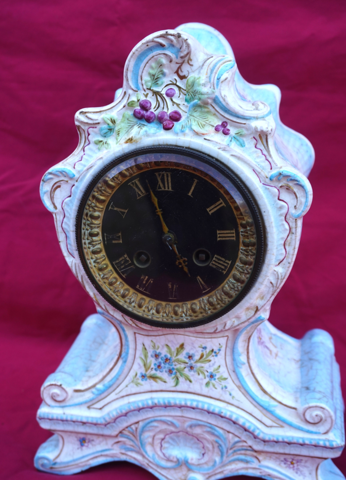 Ceramic Mantle Clock Louis XV style 8 Days Paris Movement 1900's