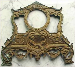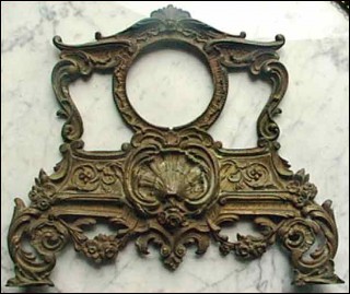 This brass front in Regence style has been made around the 19th century for a Paris movement 3"1/2 diameter. Good condition 11"1/2 tall 12"1/2 width. Good condition.