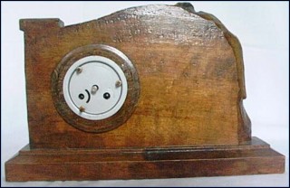 This French beech wooden mantel clock has been made in Basque country during the 30's. The hand carving and painting pattern show a young Basque in traditional costume to the village fountain. The decor is painting and glazing : mixed technique. The movement signed Scout is working but it need a good cleaning. 11"1/4 tall, 7"1/2 width. Good condition.
