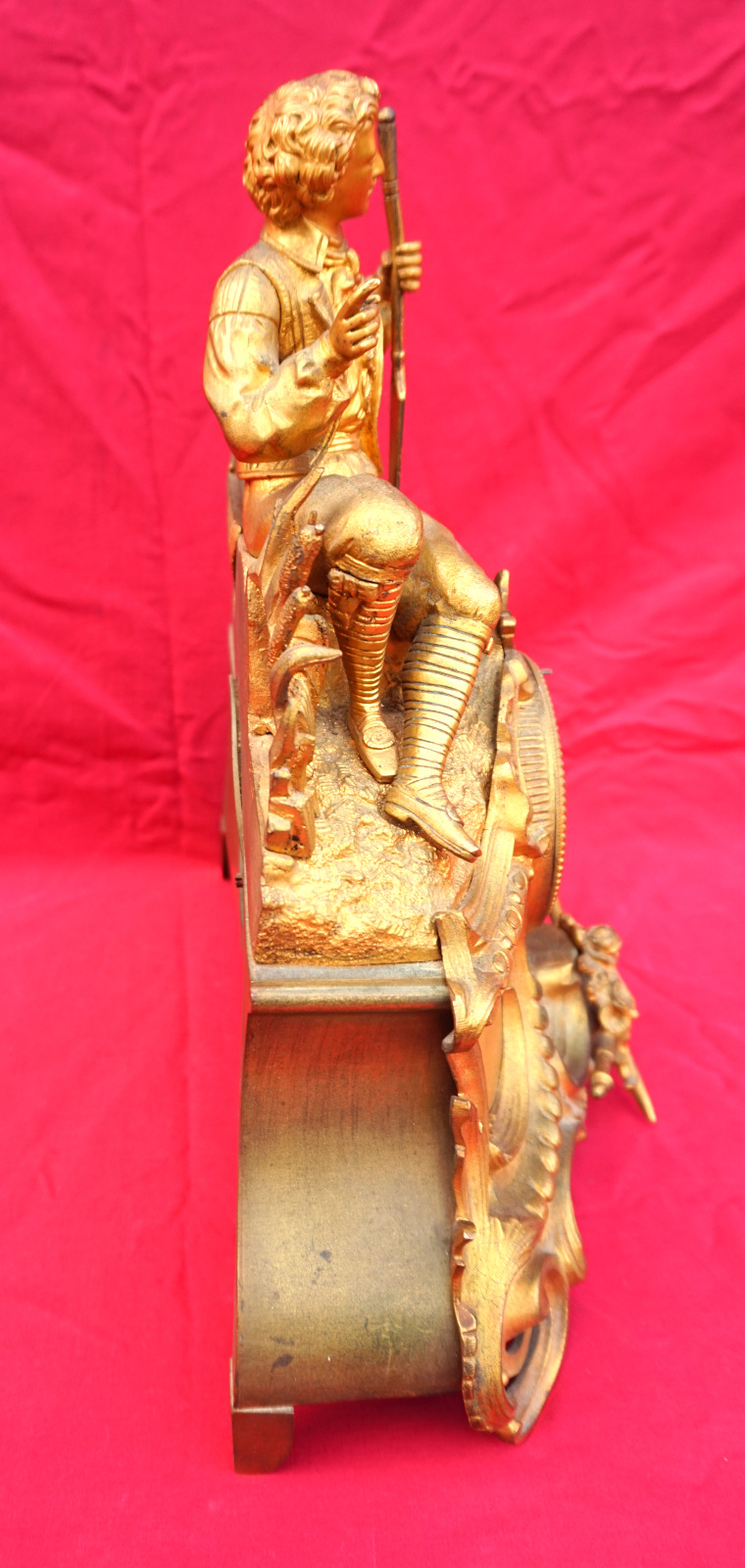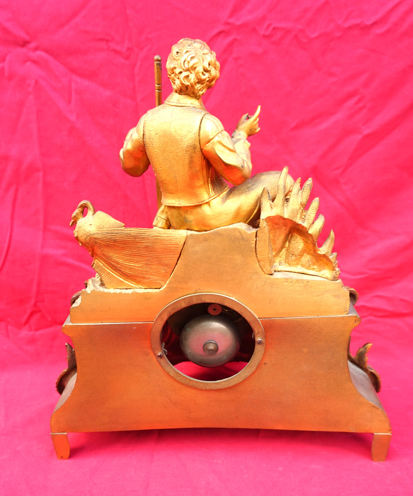 French gilt bronze mantle clock with Lafayette on the top and 8 days movement by Linet Paris circa 1830. The movement works and strikes the hours and the half. 13 3/8" (34cm) height, 12 1/4" (31cm) width, 5 3/4" (14.5cm) depth , weight 9lbs 10 oz (4.383 kilograms). Perfect condition as shown by the following pictures.