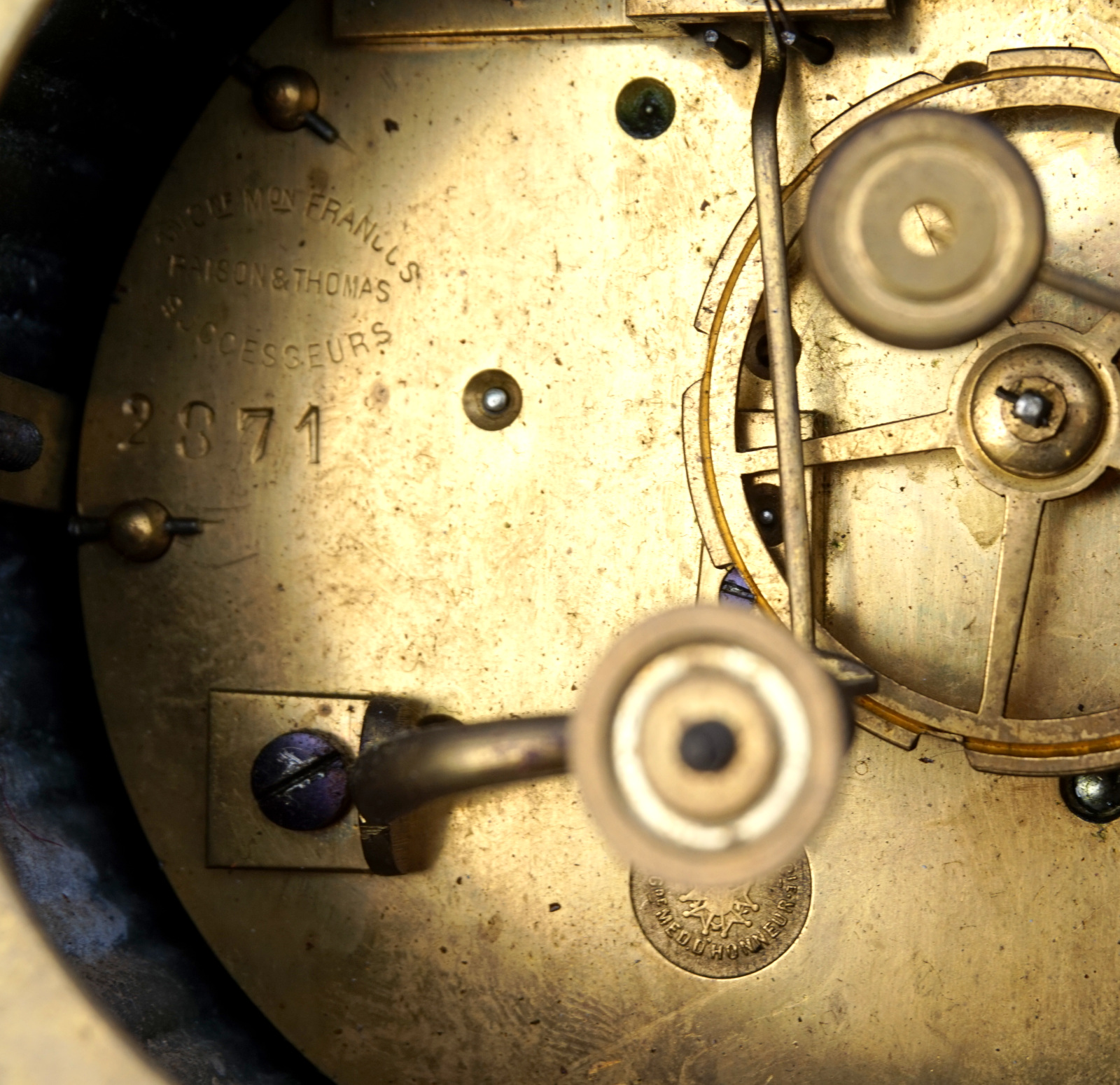 Gilt Patina Spelter Mantle Clock 8 Days Paris Movement Late 19th C