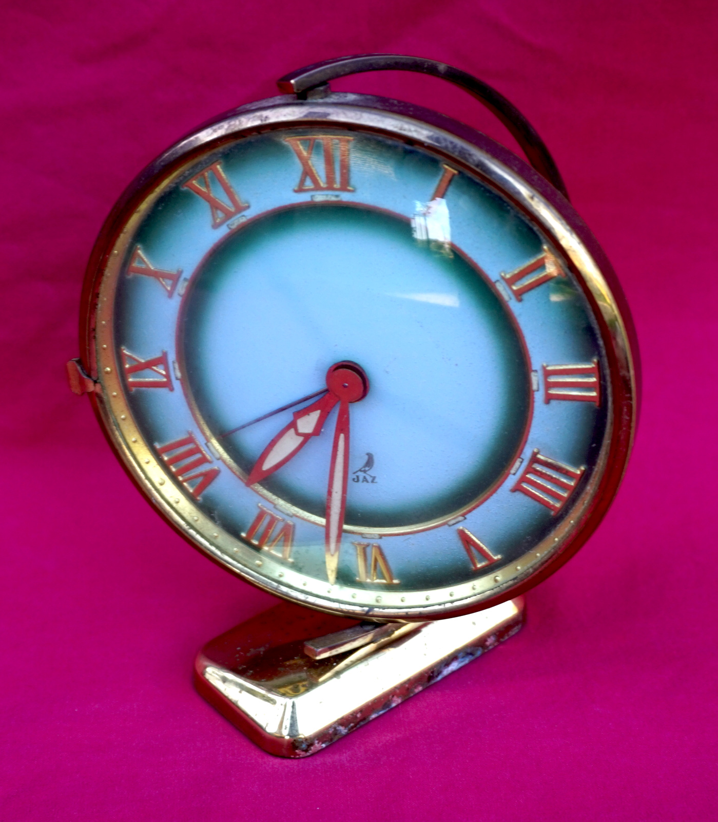 JAZ TOURNIC Rotating Alarm Clock Roman Numerals Green Dial 1960's