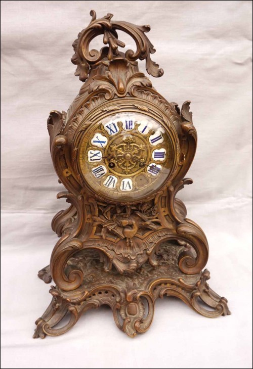 Mantel CLock Bronze Rococo Louis XV Style 8 Days Paris Movement 19th C