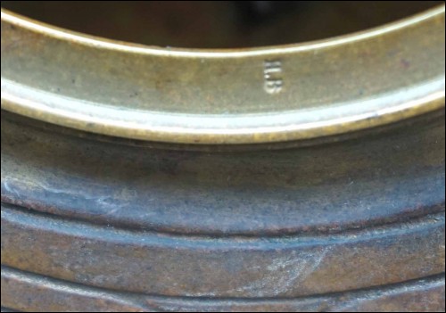 French bronze matel clock in Rococo Louis XV style with 8 days movement of Paris and Roman numerals in enameled individual cartouche made late 19th century. The movement works, the case is signed HB. 18 1/8" (46cm) height, 13" (33cm) width, 7 1/2" (19cm) depth, weight 24lb 7,18oz ( 11,09 kilograms). Good condition with original key, pendulum, only the leaf on the top of the case is missing as shown by the following pictures.