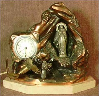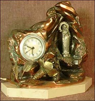 Music Box Alarm Clock Our Lady of Lourdes in Coppered Spelter