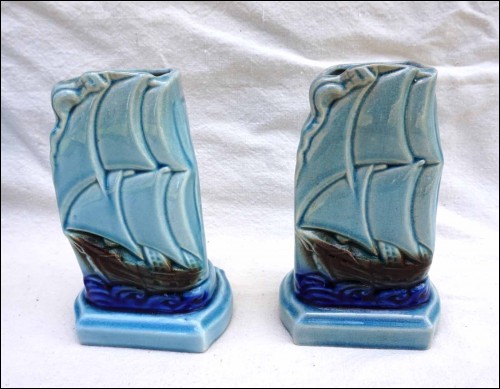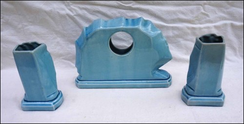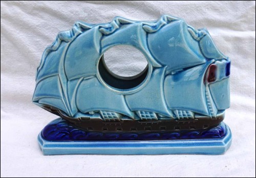 Sailling Boat Clock Vase Set Mantel Garniture Faience Sarreguemines