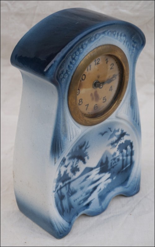 Vintage Small Mantel Desk Clock Dutch Faience Egyptian Decor