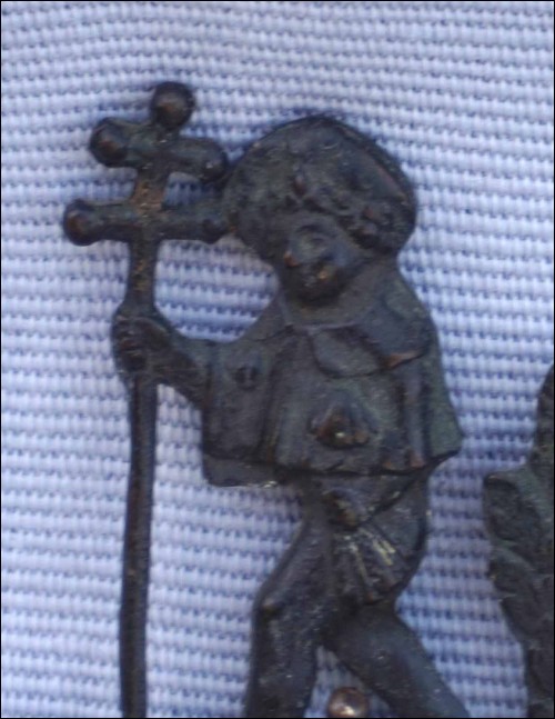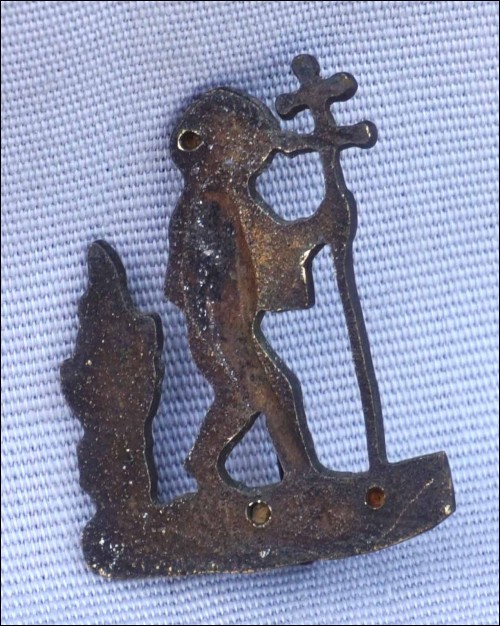 Porte montre mural en laiton représentant ST Jean le baptiste, deuxième moitié du XIXe siècle. Hauteur 5.1 cm, largeur 3.8 cm. Parfait état.
