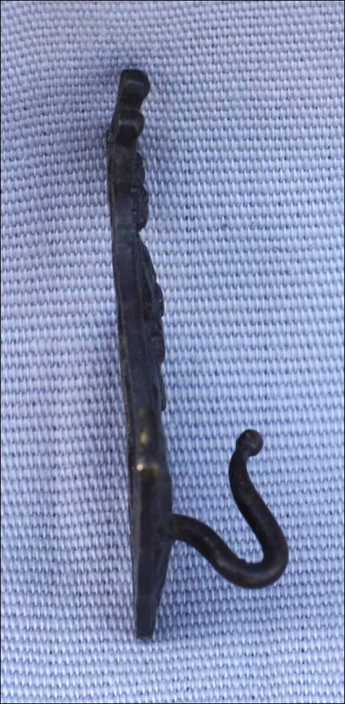 French wall watch holder with hook showing John the Baptist in dark patina brass made during the second half of the 19th century. 2" (5.1cm) height, 1 1/2" (3.8cm) width. Perfect condition with beautiful patina as shown by the following pictures.