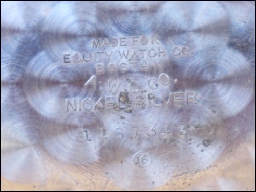 American Equity pocket watch with nickel silver case made by Walthan Watch Cie Boston. 2" diameter. The movement works but needs cleaning, the glass is broken as presented on the following pictures.