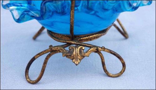 Watch Holder Tidy Gilt Brass Blue Scalloped Glass Late 19th C