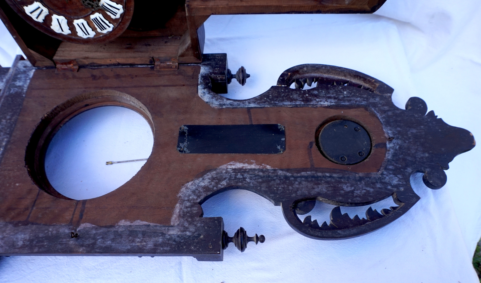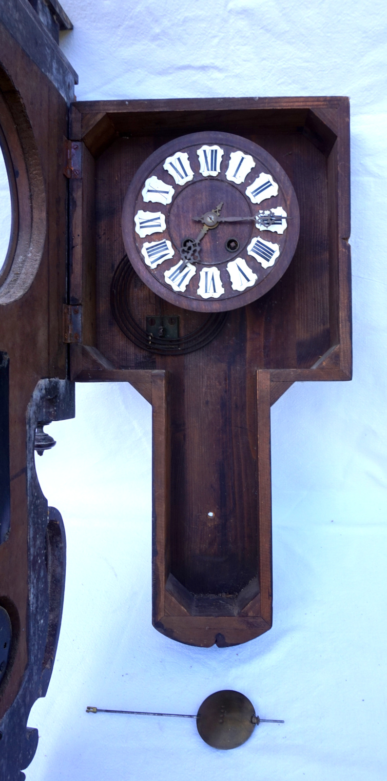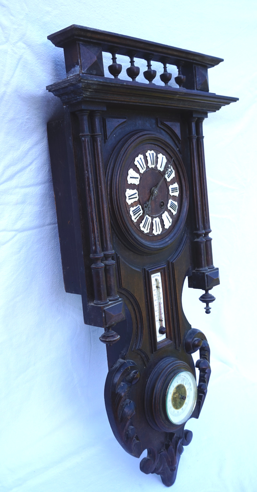 Wood Carved Wall Clock Barometer Thermometer Gong 8 Days Movement 1880's