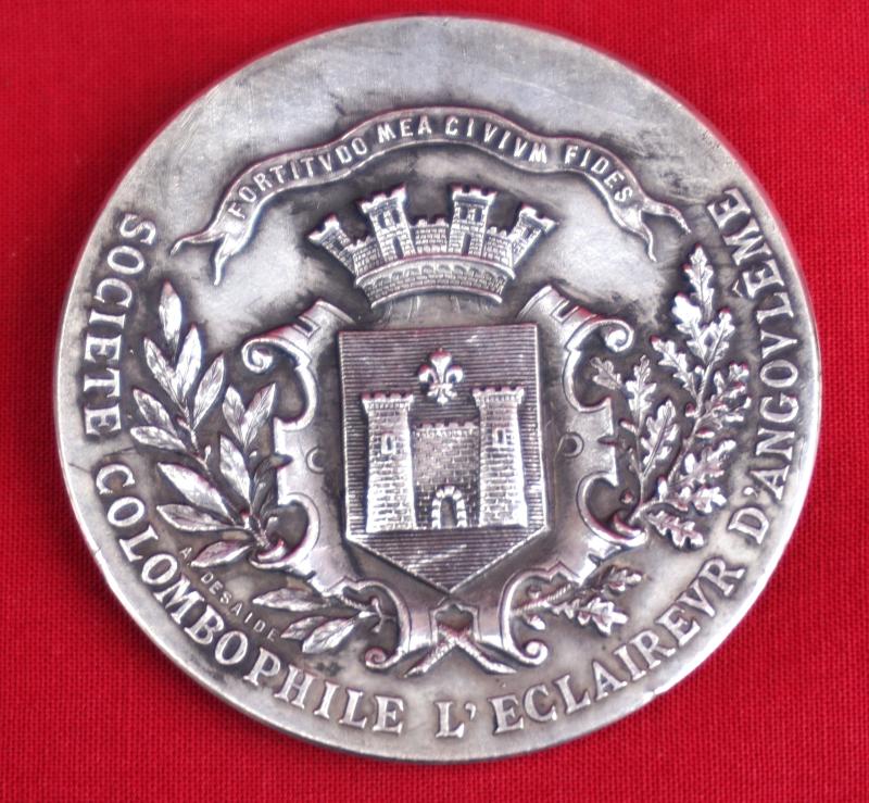 Médaille à l'effigie de Cérès, édition Monnaie de Paris, pour La Société Colombophile L Eclaireur d'Angoulème, en argent vers 1880. Diamètre 42 mm, poids 36 gr. Bel état.