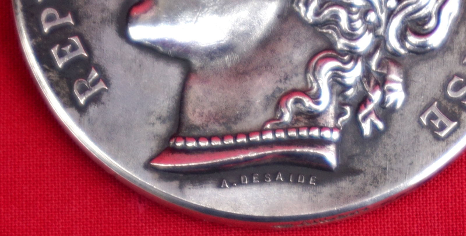 French Ceres sterling silver medal for the homing pigeon fancier society in Angouleme made by A Desaide for Monnaie de Paris during the 1880's. It's hallmarked argent and the horn. 42mm (1 11/16") diameter, weight 36grams (1.27oz). Good condition.