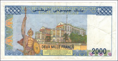 2000 Francs Djibouti paper money 1995 undated T.001 alphabet. Condition: minor fold lines as shown by the following pictures.