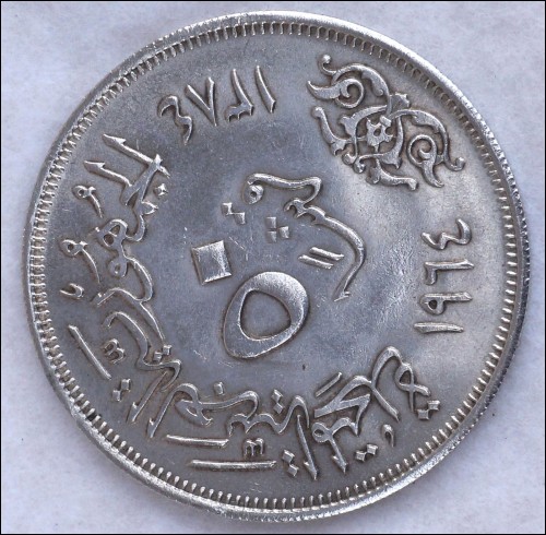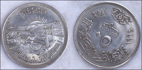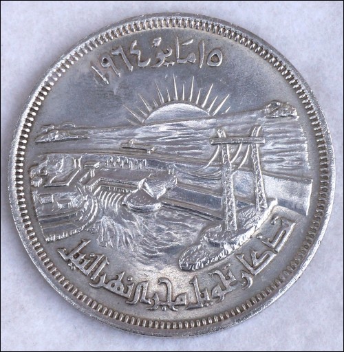 Egypt Silver 1964 AD 1384 AH Commemorative 50 Piastre Nile Diversion Aswan High Dam