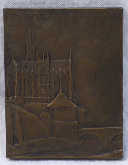Plaque médaille Lorraine 1977 en bronze signée Ernesta Robert Merignac. Bel état, choc angle haut droit. Hauteur 63 mm, largeur 49 mm. Poids : 132 gr