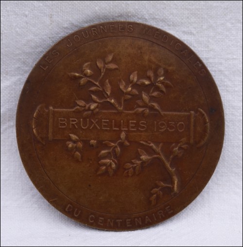 Médaille (de table) des Journées médicales du centenaire Bruxelles 1930 Diamètre 65 mm, poids 94 grammes. Bel état.