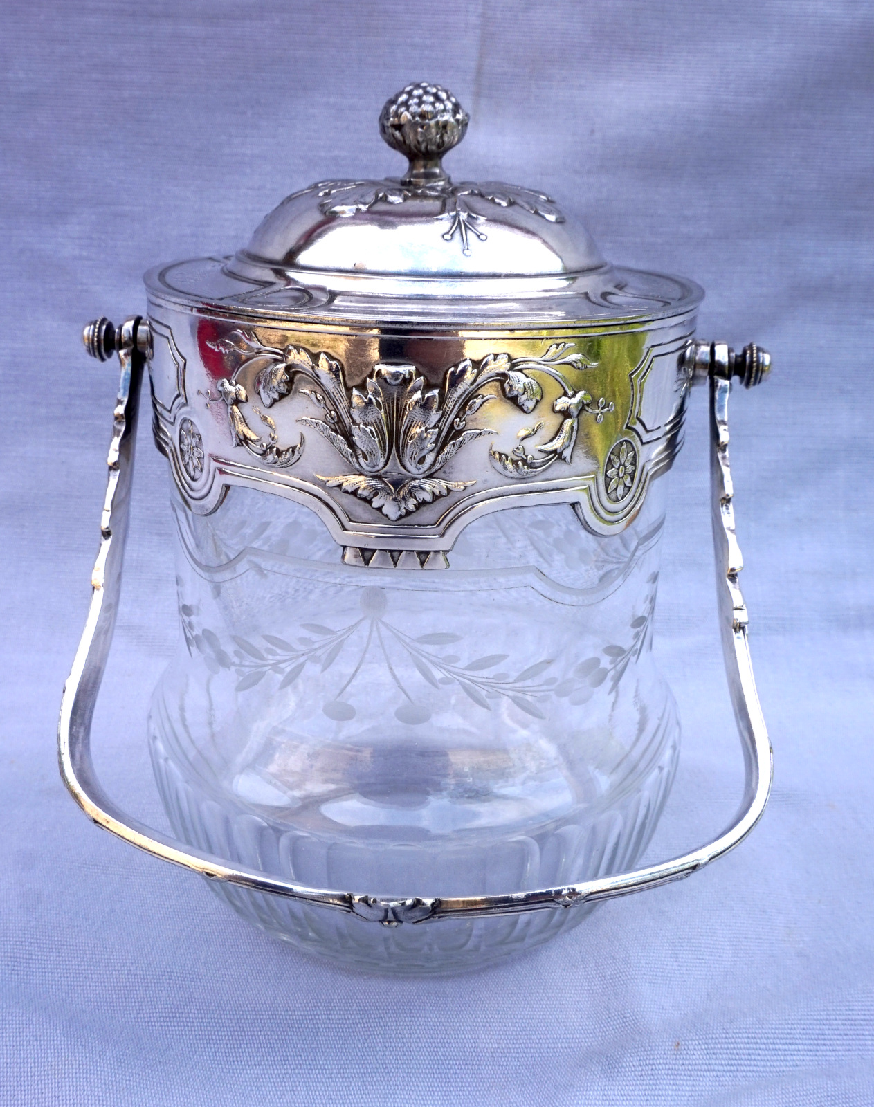 Contact us for Engraved Crystal Silverplate Biscuit Barrel Jar Cookie Minerva Paris 1900's