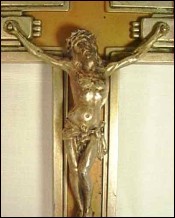 Crucifix Gilt Spelter Bronze on Inlayed Cross 1950