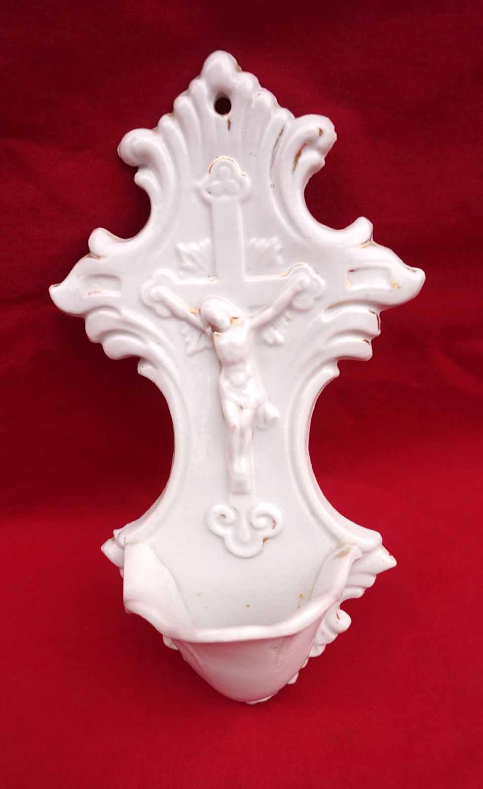 CHRIST Crucifix Holy Water Font French Old Paris Porcelain 19 th C