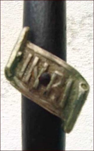 Altar crucifix in silver plate spelter on a darken wood cross made around 1910 in memory of Ste Anne d'Auray near Quimper. The INRI symbol for Iesus Nazarenus Rex Iudaeorum, Jesus of Nazareth King of the Jews stands on the top. Good condition. 15"1/2 high 7" width.