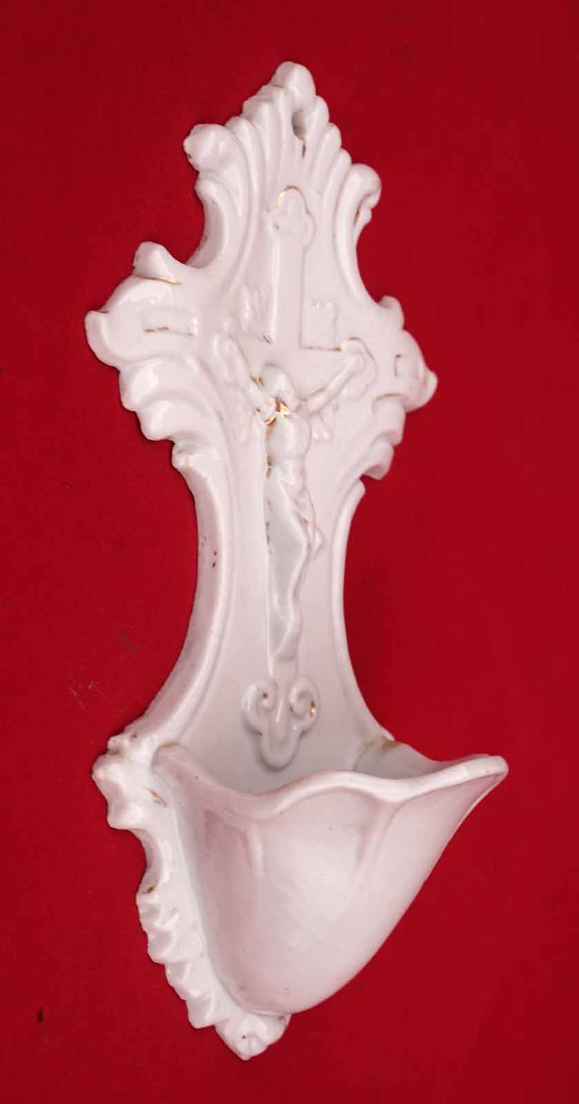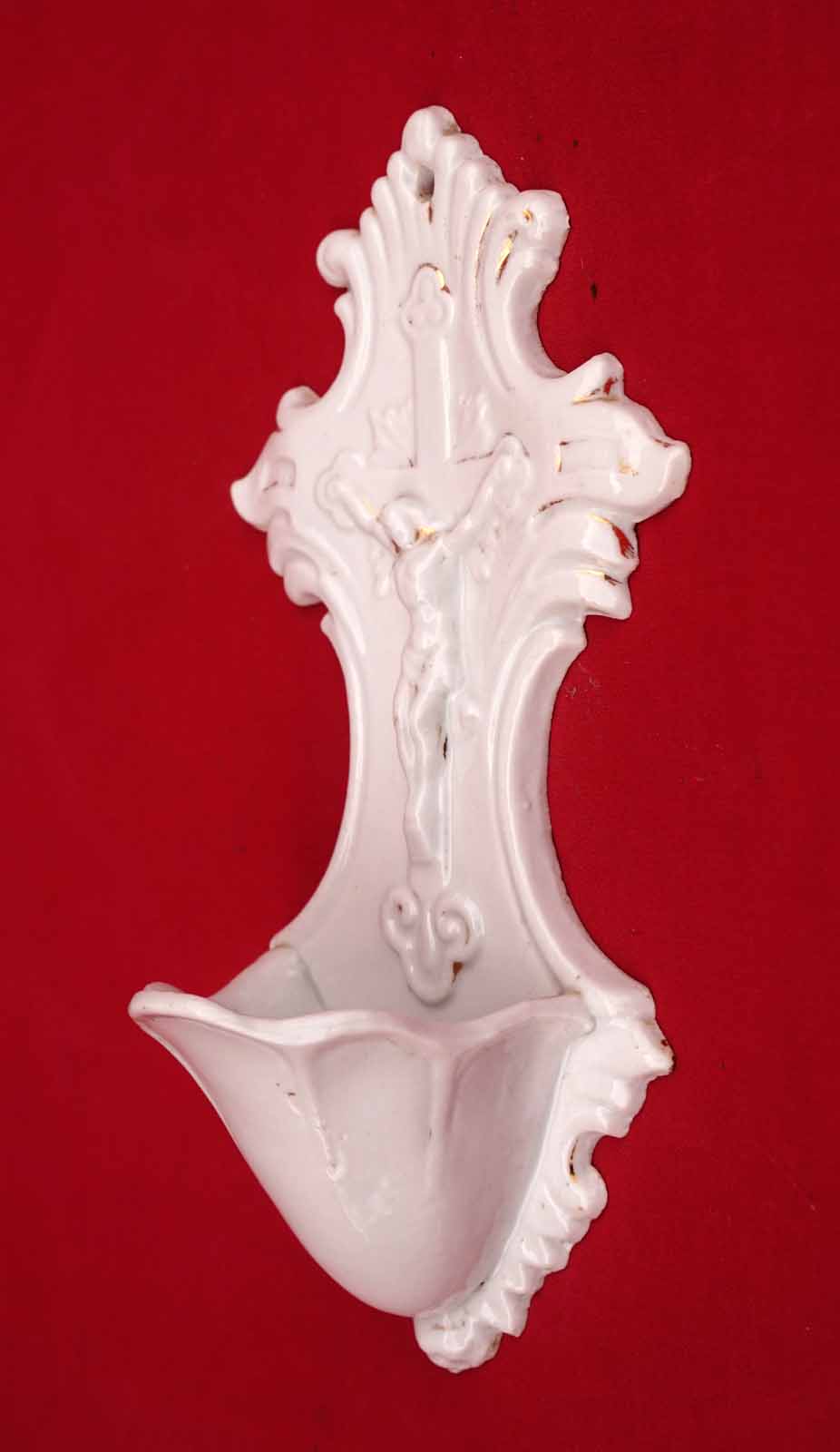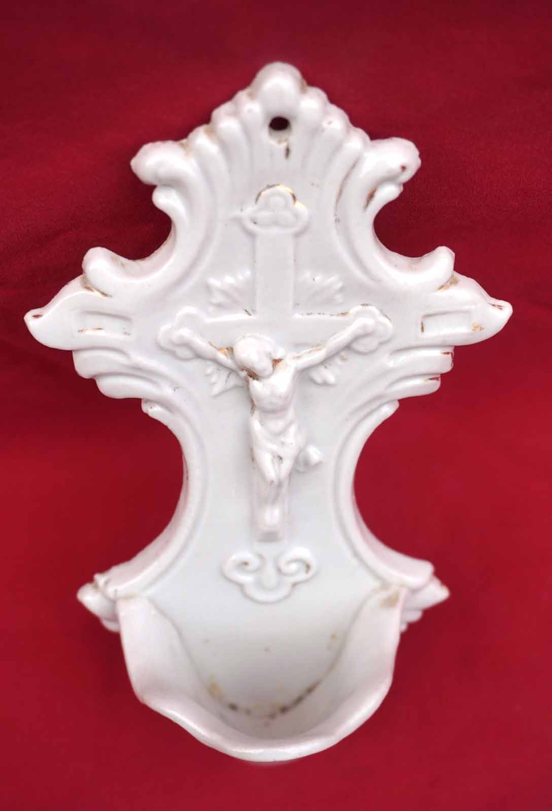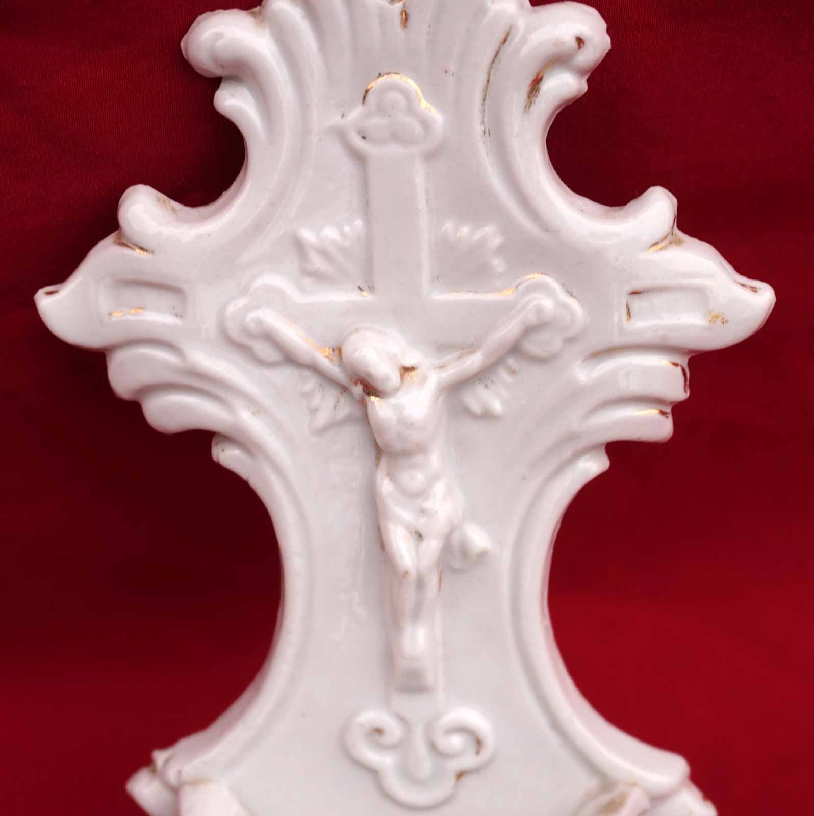 CHRIST Crucifix Holy Water Font French Old Paris Porcelain 19 th C