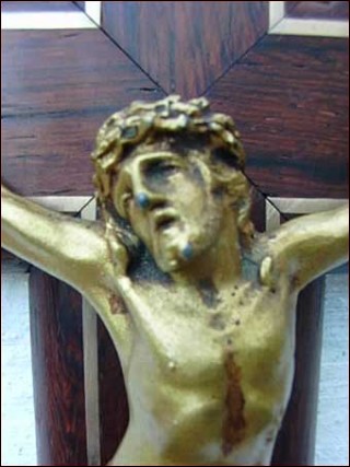 Crucifix Gilt Spelter Bronze Inlayed Rosewood Cross 1880
