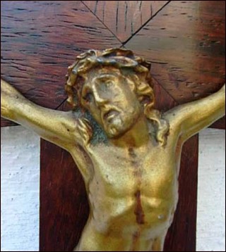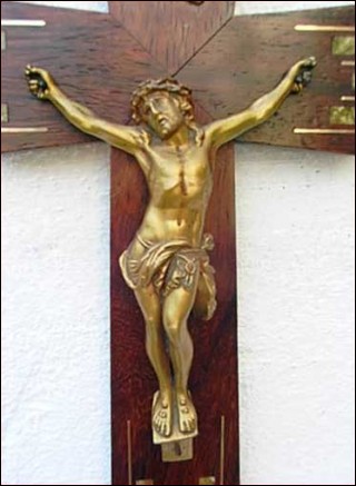 Crucifix Gilt Spelter Bronze Inlayed Rosewood Cross 1920