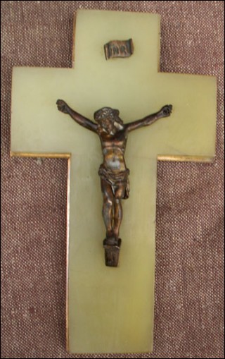 Crucifix sur onyx du Brésil vers 1900. Bel état d'origine. Hauteur 19.2cm, largeur 11,6 cm.