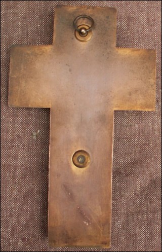 French Crucifix in spleter bronze on onyx cross with bronze plate on the back made in France during the 1900's. Good condition, it has a bronze ring on the back for hanging. 7 5/5" high 4 5/8" width for the cross.