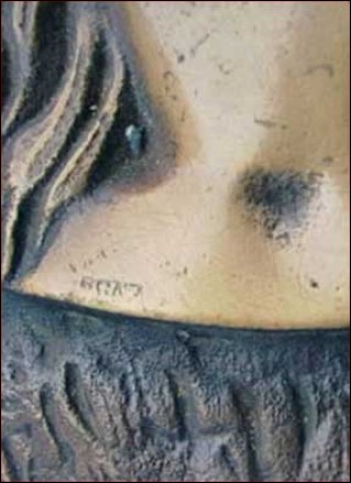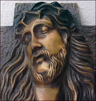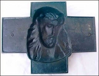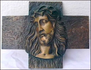 Head on Christ on cross in bronze made by the famous Antonin Barthelemy artist around 1920. It's signed in front A B and stamped bronze. Good condition 9½" width 7" high.