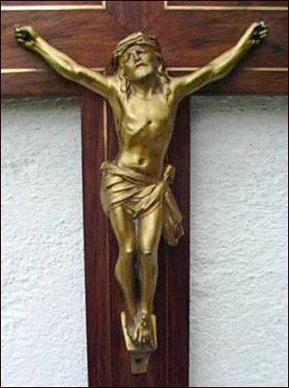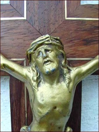 Large Crucifix Gilt Spelter Bronze Inlayed Cross Art Deco 1940