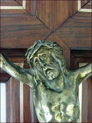 Large Crucifix Gilt Spelter Bronze Inlayed Rosewood Cross 1880