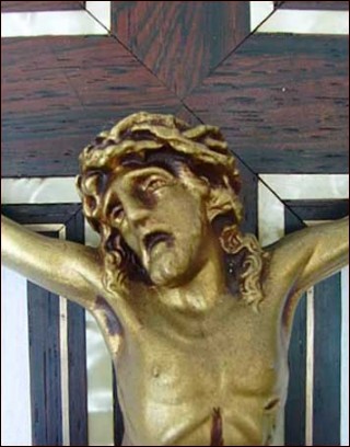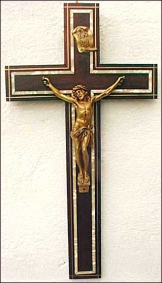 Large Crucifix Gilt Spelter Bronze Inlayed Rosewood Cross 1920