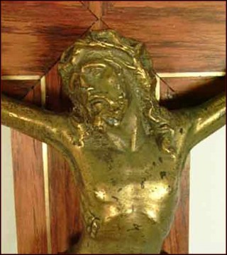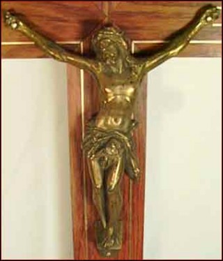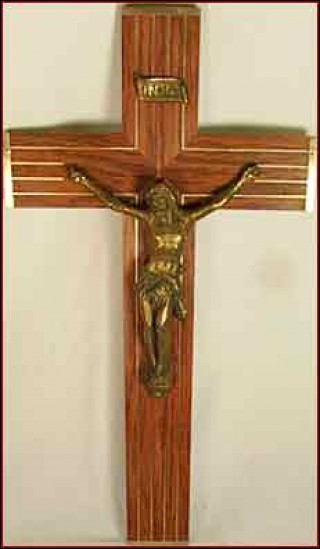Wall Crucifix Golden Spelter Bronze on Rosewood Cross