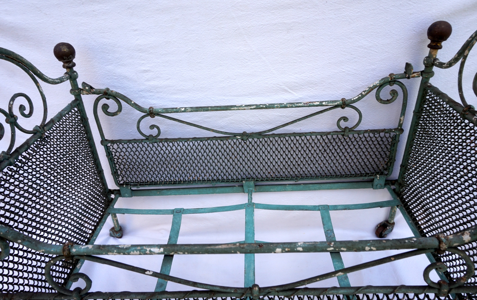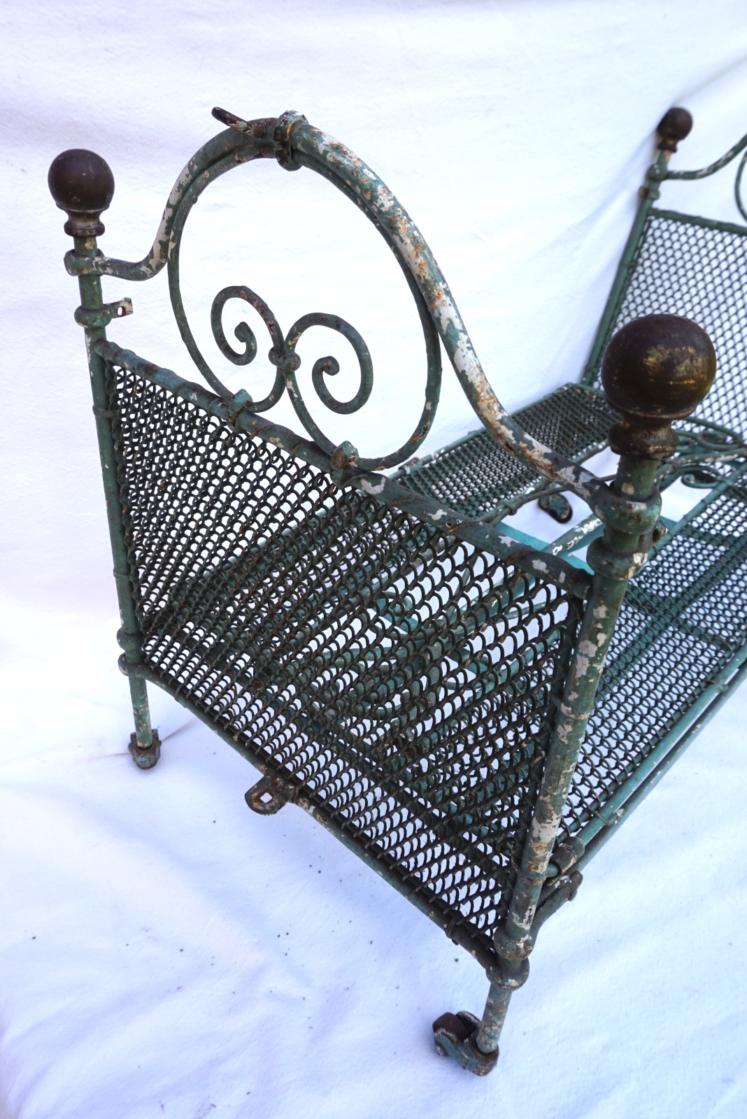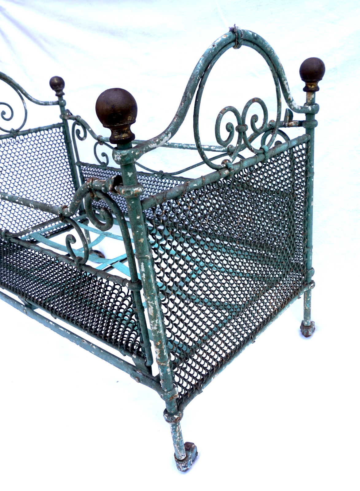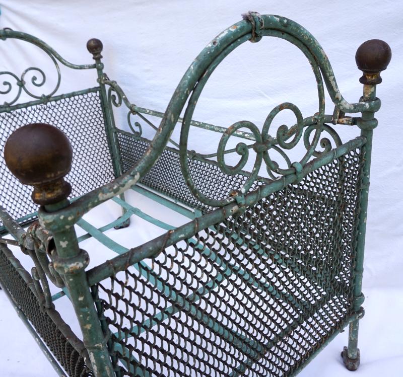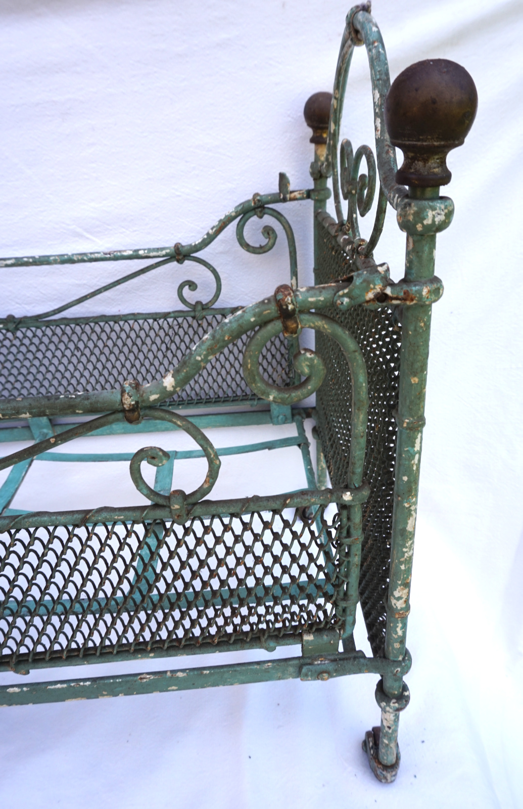 Antique french victorian folding bed for doll in iron with copper balls made during the 1900's. 17 3/4" (45cm) on the top of the head bead, 22 1/2" (57cm) length, 12 1/2" (31.7cm) width. Perfect condition.