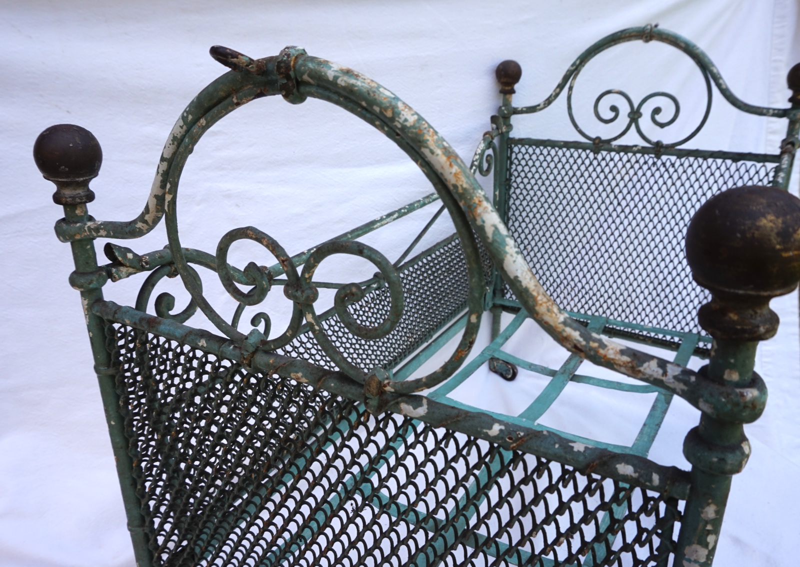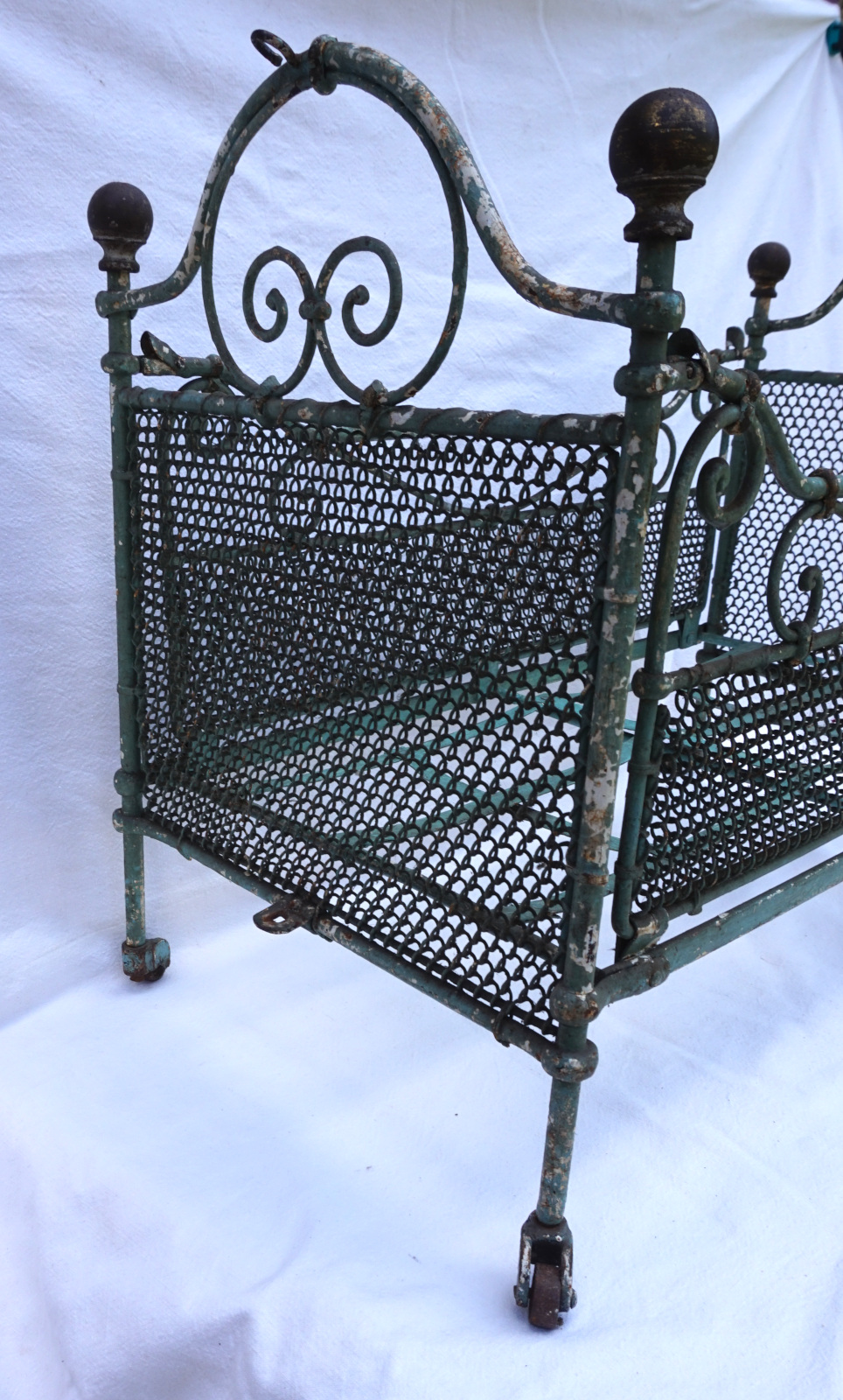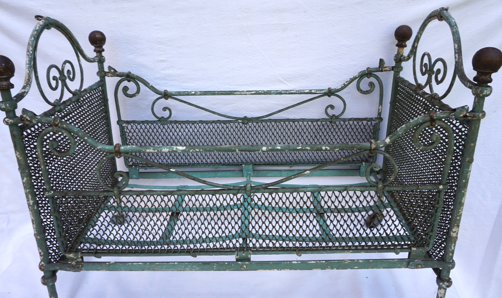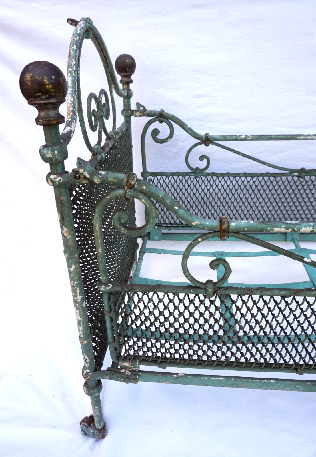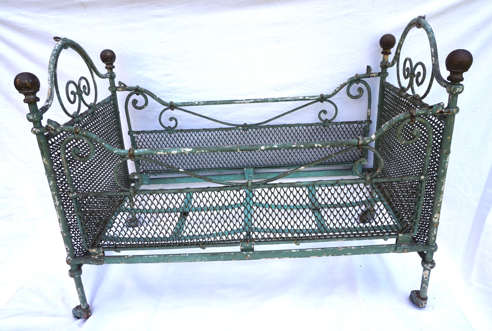Antique french victorian folding bed for doll in iron with copper balls made during the 1900's. 17 3/4" (45cm) on the top of the head bead, 22 1/2" (57cm) length, 12 1/2" (31.7cm) width. Perfect condition.