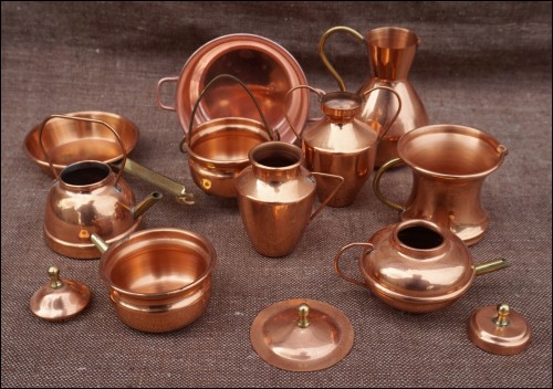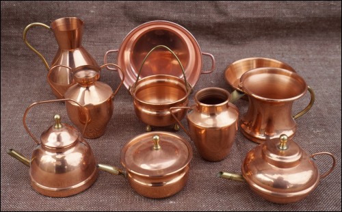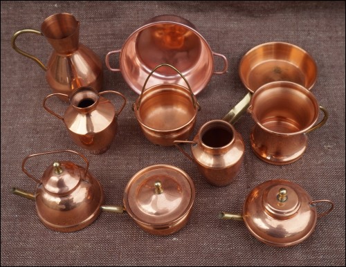 Copper Kitchenware Cookware Minature for Doll House 10 pcs